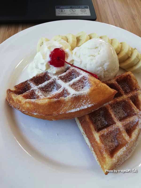 ” Waffle Sundae เป็นเมนู Hot & Cold ที่มีวาฟเฟิลร้อนๆ เสิร์ฟพร้อมกับไอศกรีม Hokkaido Milk ท็อปอัพด้วยวิปครีม เชอร์รี่และกล้วย ทั้งของร้อนและของเย็นมาเจอกันทำให้การกินครั้งนี้ “อบอุ่น” และมีความสุขที่สุด ”