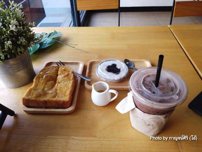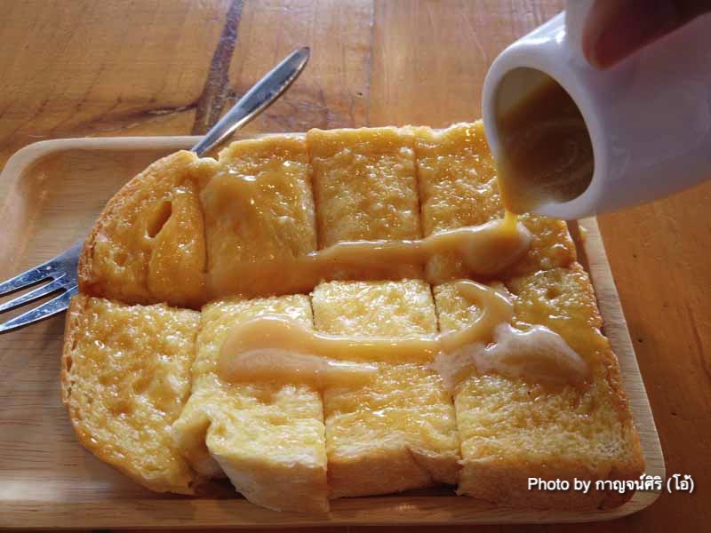 ” ที่ร้านมีเมนูขนมปังเนยอบใหม่สด หอมๆ พร้อมเสิร์ฟคู่กับสังขยาไข่และนมสด(ซ้อนกันเป็น Layer) เอาไว้ราดบนขนมปัง รสชาติเข้ากันอย่างมาก ขนมปังที่มีความกรอบและเนื้อตรงกลางที่นุ่มฉ่ำ เสริมความอร่อยด้วยสังขยาไข่รสชาติหวานนวลละมุนลิ้น ”
