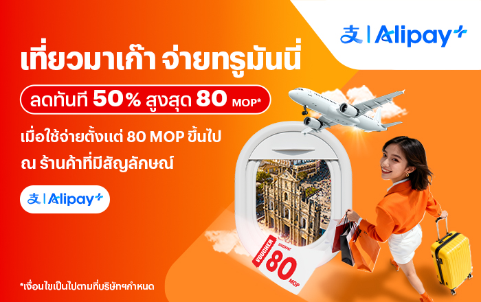 จ่ายที่ประเทศมาเก๊ารับส่วนลด 50% รวมสูงสุด 80 MOP* เมื่อใช้จ่ายตั้งแต่ 80 MOP ขึ้นไป6 มิ.ย. 68 - 31 ธ.ค. 68 Tanaiphat wan2025-10-30T16:27:31+07:005 มิ.ย. 2025|Categories: จ่ายต่างประเทศ, จ่ายต่างประเทศ – มาเก๊า|