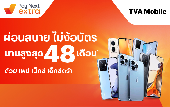 TVA Mobileมือถือ ผ่อนสบาย นานสูงสุด 48 เดือน1 ก.ย. 65 เป็นต้นไป tmn-hathairat2024-03-06T21:10:04+07:0016 ก.ย. 2022|Categories: Pay Next Extra - Summer 2023, Pay Next Extra - Year End 2023, Paynext Extra : มือถือ, Paynext Extra Yearend|