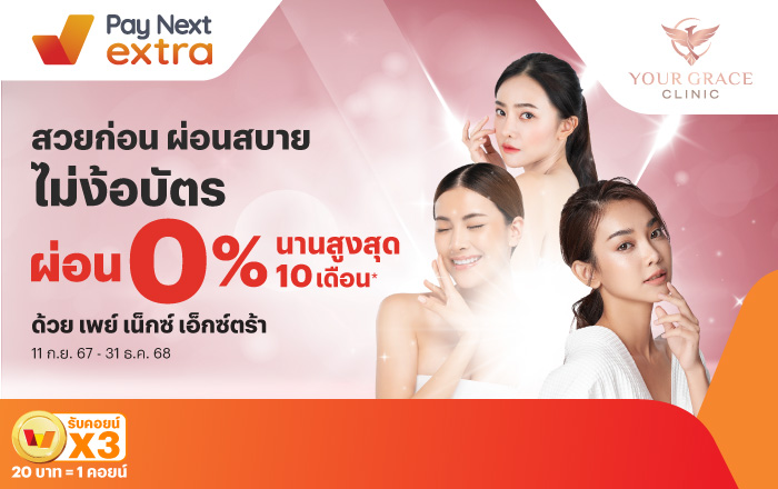 YOUR GRACE CLINICสวยก่อน ผ่อนสบาย ไม่ง้อบัตร 0% นานสูงสุด 10 เดือน*11 ก.ย. 67 - 31 ธ.ค. 68 tmn-hathairat2024-10-07T17:06:44+07:007 ต.ค. 2024|Categories: Paynext Extra : ความงาม|