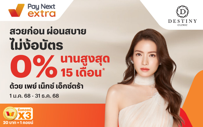 DESTINY CLINICสวยก่อน ผ่อนสบาย ไม่ง้อบัตร 0% นานสูงสุด 15 เดือน*1 ม.ค. 68 - 31 ธ.ค. 68 Tanaiphat wan2025-11-18T11:16:39+07:0013 ม.ค. 2025|Categories: Paynext Extra : ความงาม, paynext-yearend-promotion|