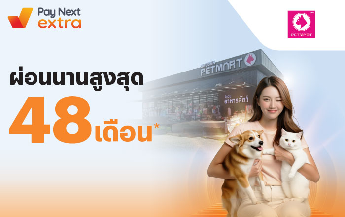ผ่อนสบาย นานสูงสุด 48 เดือน หรือผ่อน 0% กับร้านค้าที่ร่วมรายการ