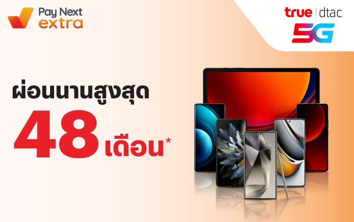 - ลูกค้าจะต้องทำการลงทะเบียนก่อนทำรายการผ่อนชำระ เพื่อรับสิทธิ์เงินคืนเข้าบัญชีทรูมันนี่ที่ผูกกับบริการ เพย์ เน็กซ์ เอ็กซ์ตร้า