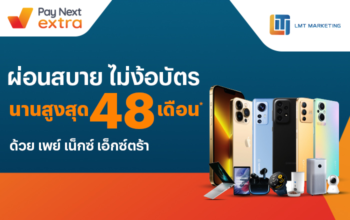LMT Marketingคุ้มยาว ผ่อนมือถือสบาย ผ่อนได้นานสูงสุด 48 เดือน1 เม.ย. 65 เป็นต้นไป Tanaiphat wan2024-03-11T14:06:59+07:0031 มี.ค. 2022|Categories: Pay Next Extra - Summer 2023, Pay Next Extra - Year End 2023, Paynext Extra : มือถือ, Paynext Extra Yearend|Tags: ผ่อนมือถือ 0%, วงเงินสะดวกใช้ ผ่อนสบาย, เพย์ เน็กซ์ เอ็กซ์ตร้า|