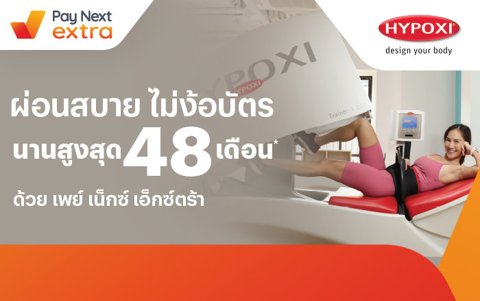 HYPOXIออกกำลังกายแนวใหม่ ผ่อนสบาย นานสูงสุด 48 เดือน12 ม.ค. 65 เป็นต้นไป Tanaiphat wan2024-03-06T20:50:36+07:0017 ม.ค. 2022|Categories: Pay Next Extra, Pay Next Extra - Summer 2023, Pay Next Extra - Year End 2023, Paynext Extra : ความงาม, Paynext Extra Yearend|Tags: HYPOXI, Pay Next Extra, วงเงินสะดวกใช้ ผ่อนสบาย|