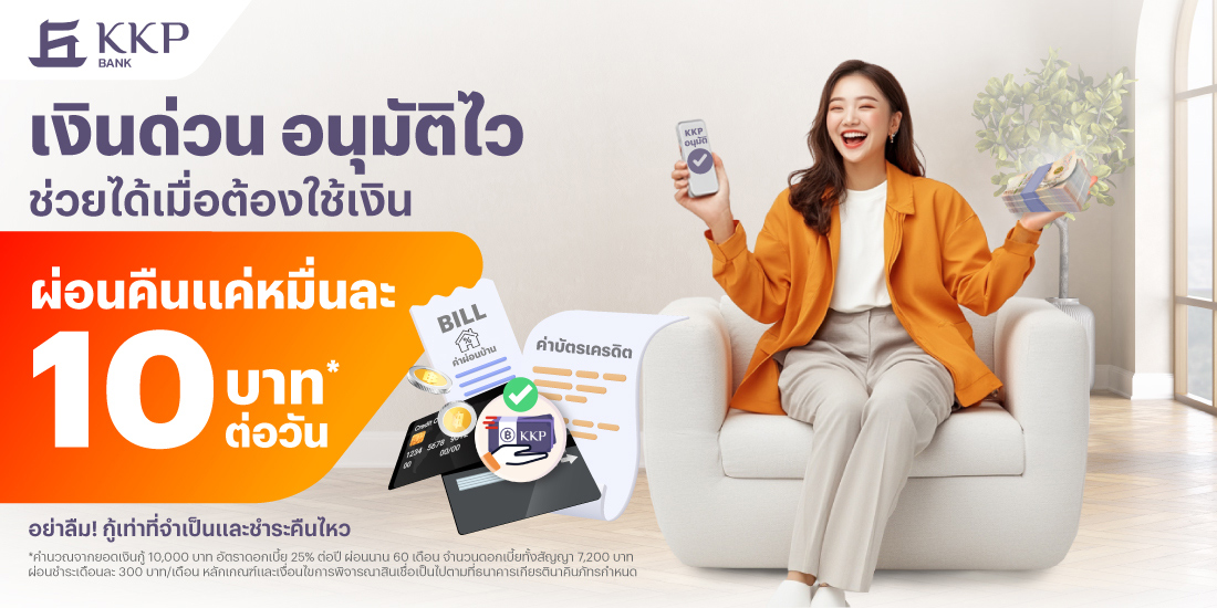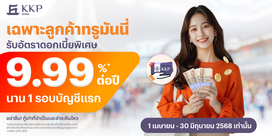 - อัตราดอกเบี้ยอยู่ระหว่าง 9.99% ถึง 25% ต่อปี ซึ่งจะเป็นไปตามเกณฑ์การพิจารณาจากธนาคารธนาคารเกียรตินาคินภัทร