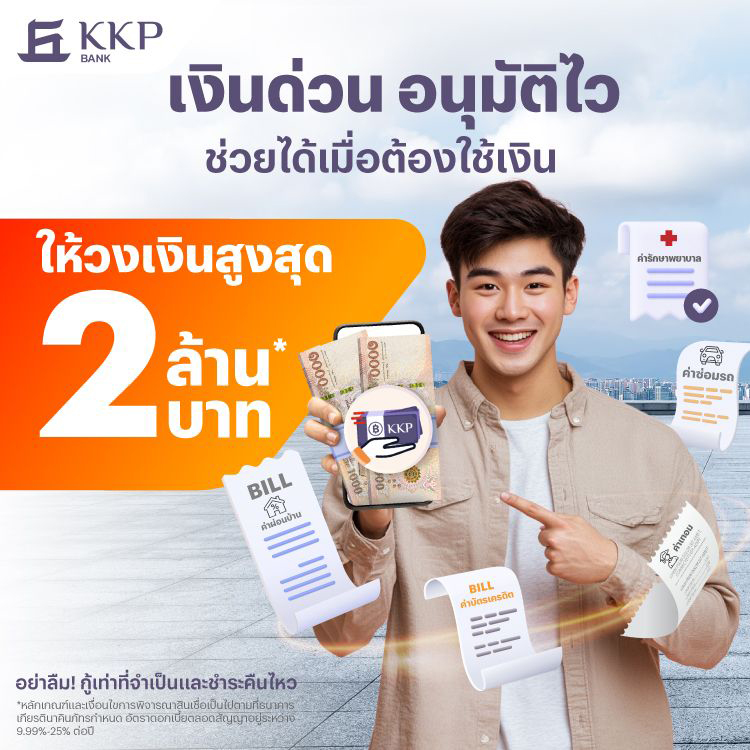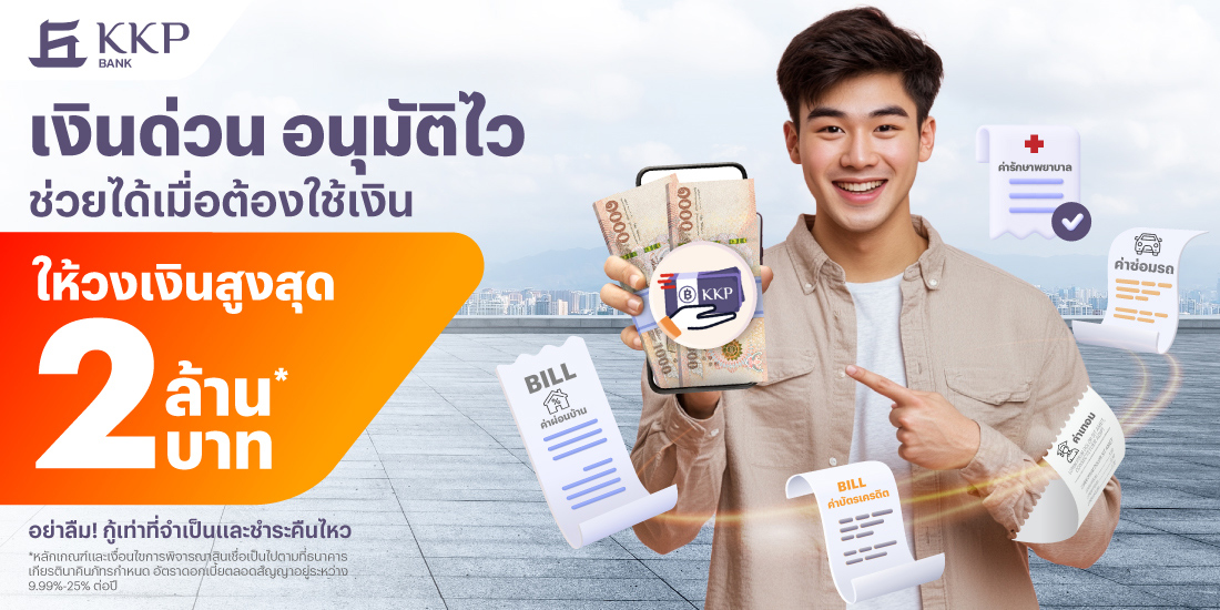 - วงเงินสูงสุด 5 เท่าของรายได้ โดยวงเงินอนุมัติเป็นไปตามเกณฑ์ของธนาคารเกียรตินาคินภัทร