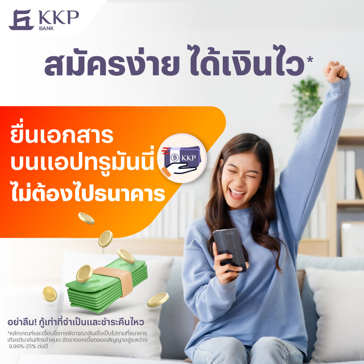 - ติดต่อสอบถามข้อมูล วงเงิน ดอกเบี้ย รายละเอียดเกี่ยวกับสินเชื่อได้ทาง KKP Contact Center หมายเลขโทรศัพท์ 02 165 5555 ทุกวัน เวลา 07:00 – 20:00 น. หรือที่ธนาคารเกียรตินาคินภัทร ทุกสาขาทั่วประเทศ แจ้งปัญหาเกี่ยวกับการสมัครบนแอป ทรูมันนี่ ติดต่อ 1240 กด 3